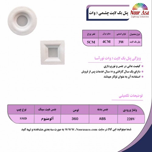 ویژگی های برجسته پنل بک لایت چشمی 3 وات: